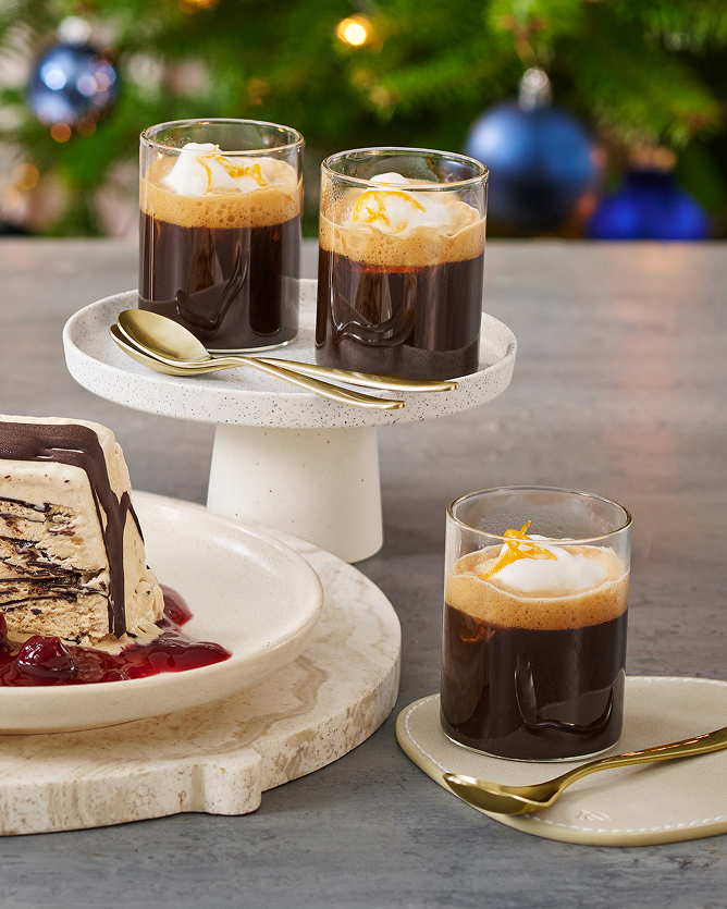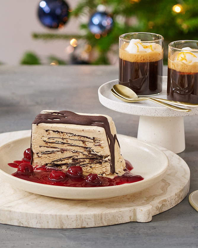 Kaffee-Schoko-Semifredo mit Gewürzkirschen